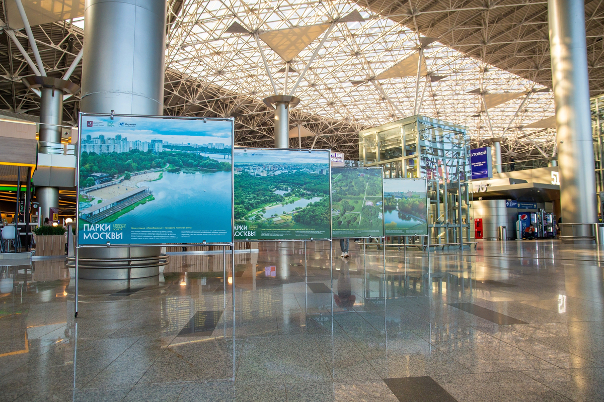 В аэропорту Внуково открылась фотовыставка «Парки с высоты птичьего полета». Гости смогут увидеть зеленые зоны отдыха глазами птиц. 6 октября в аэропорту Внуково открылась фотовыставка «Парки с высоты птичьего полета». Из окон иллюминатора самолета можно оценить масштаб парков, а на выставке получится разглядеть зоны отдыха в мельчайших деталях. Посетители выставки смогут увидеть некоторые парки Москвы с высоты птичьего полета, а также познакомиться с особенностями их планировки, знаковыми деталями: посмотреть на Голицынский пруд Парка Горького, фонтанную площадь «Сокольников», панораму Сиреневого сада, «Ходынского поля» и других парков столицы. Выставка будет работать до 6 ноября на втором этаже терминала А Международного аэропорта Внуково.