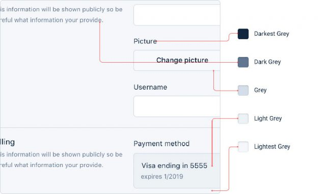 ЧТО НУЖНО ДЛЯ СОЗДАНИЯ ПАЛИТРЫ ЦВЕТОВ Вполне очевидно, что вы не сможете реализовать полноценный стоящий проект, используя всего пять HEX кодов веб-цветов. Вам нужен более широкий набор элементов для создания идеального работающего прототипа. Давайте разделим нашу палитру на три группы. ОТТЕНКИ СЕРОГО Тексты, панели инструментов, фоны и др. – в большинстве интерфейсов почти всегда они серые. Практика показывает, что для полноценного результата будет достаточно 8–10 сероватых оттенков — это не так много, дабы вы ударялись в крайности и мучились при выборе, но в то же время вполне достаточно, чтобы не так часто идти на компромиссы. ОСНОВНОЙ ЦВЕТ(А) В большинстве сайтов будет достаточно двух базовых цветов, которые по сути, и формируют общий вид интерфейса – так Facebook ассоциируется у нас с синими оттенками, хотя в действительности в дизайне там чаще встречаются серые. По аналогии с предыдущим пунктом дабы сделать хорошую цветовую палитру вам потребуется 5–10 вариантов, дающих больший в