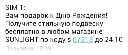 Пришло мне тут смс от Sunlight... Почему-то это было поздравление с днем рождения.