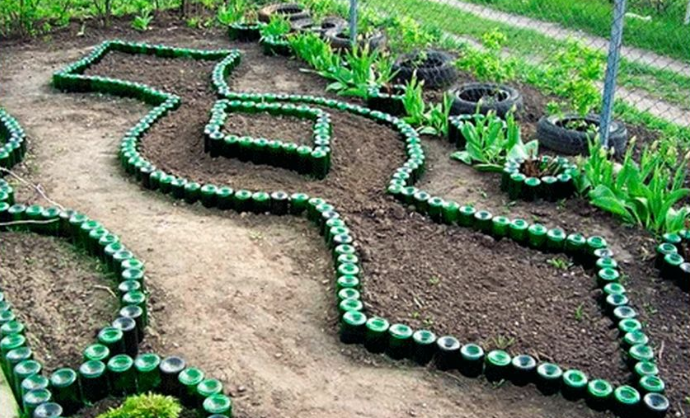 С помощью стеклянных бутылок можно создать неплохую красоту.
