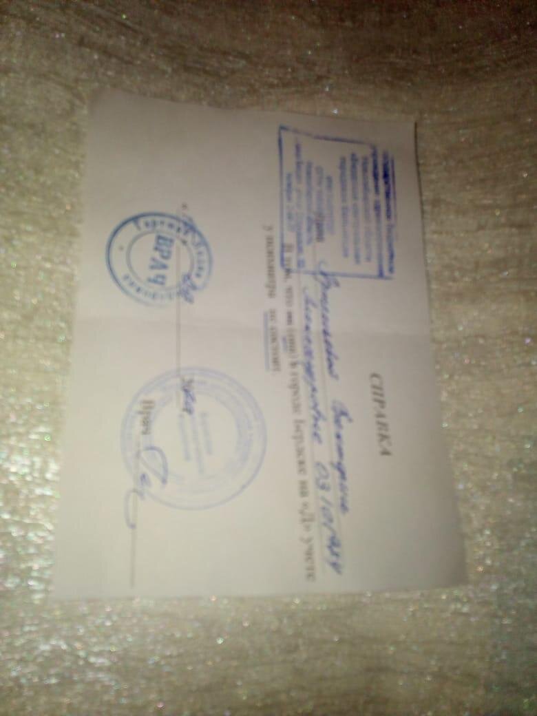 Моя справка от психиатра о том, что я здорова и не состаю на "Д" учёте и никогда не состояла.
