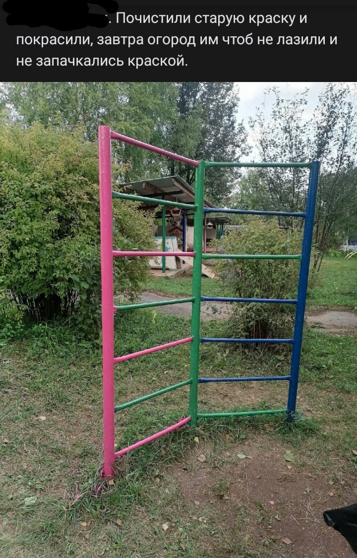 Зачастую это ободранные качели со старой краской. Старые железные лазелки. Домики полугнилые.