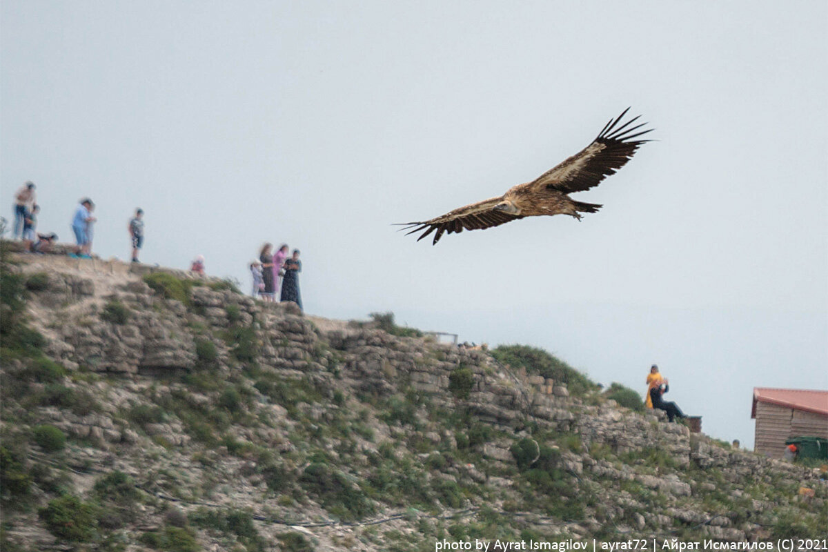Большинство людей, включая местных жителей, ошибочно называют гордо парящих в небе Горного Дагестана хищных птиц орлами. На самом деле это сип белоголовый. Очень крупный хищник, если точнее - падальщик.