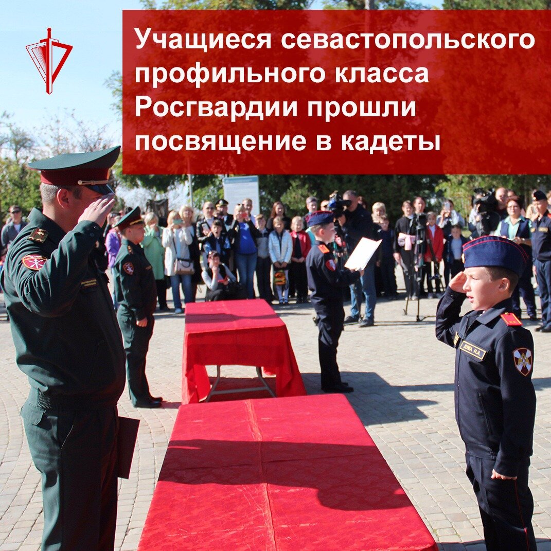 На территории мемориального комплекса музея обороны Севастополя «Малахов курган» состоялась церемония посвящения в кадеты пятиклассников гимназии № 10, ставших в этом году участниками Общероссийского детско-юношеского патриотического общественного движения «Гвардейская смена». Под музыку в исполнении военного оркестра севастопольского специального моторизованного полка у стен оборонительной башни Корниловского бастиона ученики первого в городе-герое профильного класса Росгвардии в присутствии наставников в погонах, преподавателей и родителей произнесли слова кадетской клятвы. С напутствиями к пятиклассникам обратились заместитель начальника Главного управления Росгвардии по Республике Крым и городу Севастополю – начальник управления координации деятельности подразделений Росгвардии по Севастополю полковник полиции Владимир Соболев, представитель Федерального собрания Российской Федерации полковник полиции в отставке Сергей Колбин, педагоги и офицеры Росгвардии. «Возрождение кадетского