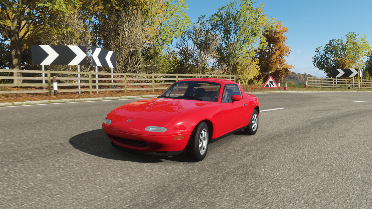 Начнем с самого начала. Первое поколение вышло в далеком 1989 году, а закончилось продаваться в 1997. Суммарно к 2021 году было выпущено 4 поколения этого маленького родстера, который разошелся тиражом уже в более 1 миллиона автомобилей. Первое поколение – единственный «слепыш» из MX-5, очень компактный по своим габаритам. В ней всего 116 л.с., что для 1989 года в маленьком автомобиле достаточно неплохо. Она приятно рулится, но не хватает прыти в ускорении. На нашем треке у нас сейчас – машина 1994 года с довольно смелым, японским дизайном. Складывающиеся фары, маленькие колеса… она выглядит словно лягушонок, маленький и юркий спорткар, доступный для всех. За малую сумму денег вы могли получить максимум автомобиля. Тем не менее, по паспортным данным это не суперкар и проехала она наш трек за 1:40, что отодвигает её назад в сравнении с одногодками или конкурентами. Но нам не стоит забывать, что из себя в принципе представляет MX-5.