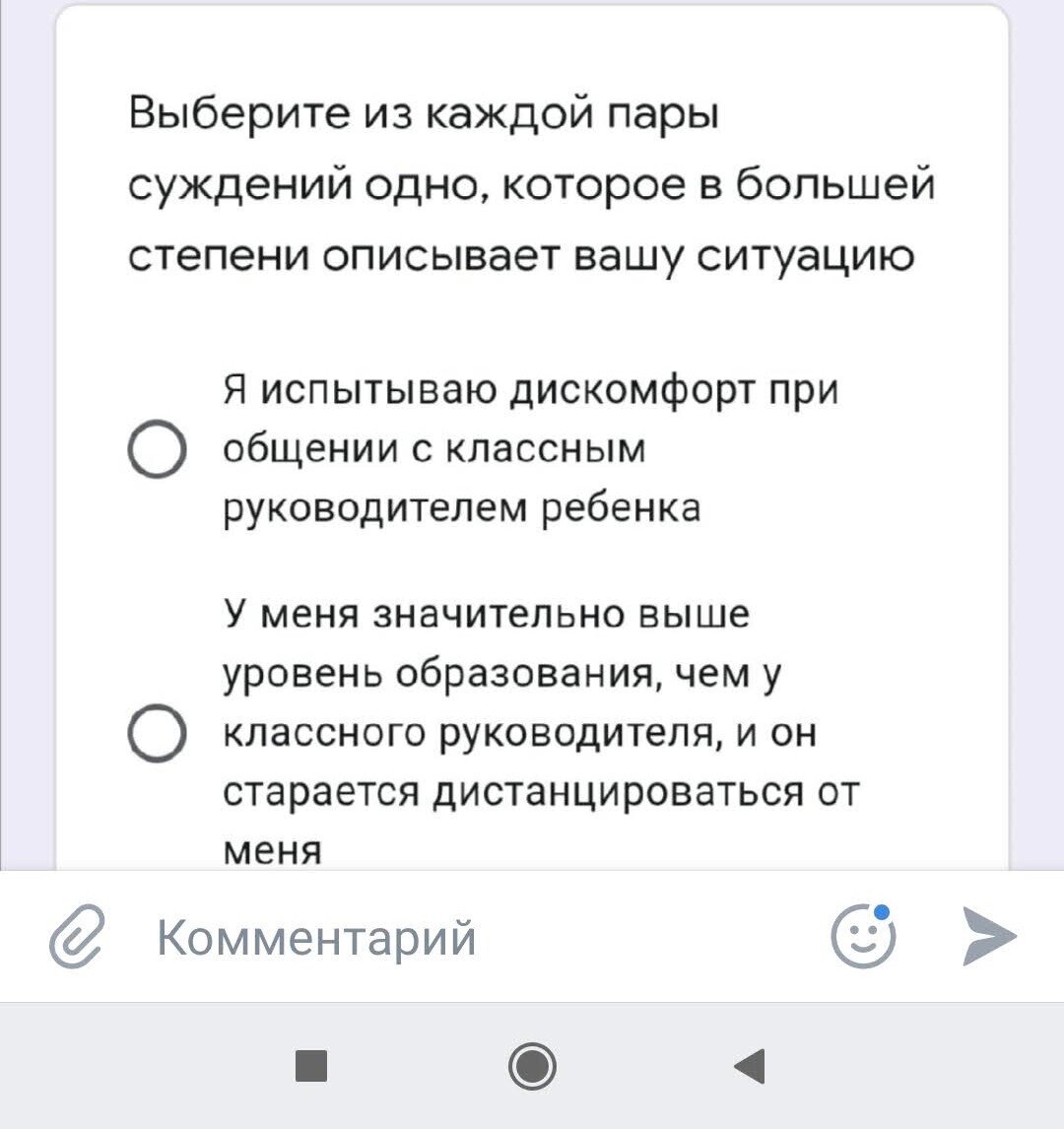 Наша городская общественность очень бурно уже два дня в городском паблике обсуждает опросник для родителей, который в обязательном порядке нужно пройти всем. Распоряжение свыше. Увидев от классного руководителя ссылку на гугл-форму с опросом я ничуть не удивилась. мы несколько раз в год заполняем что-то подобное. То интересуются мнением родителей o процессе обучения, питания, досуга. Да чего угодно. И это нормально. На основе ответов проводится мониторинг, и какие-то прорехи устраняются, учитывая желание большинства. В этот раз опросник был ну ооочень длинным.Вопросы куда интереснее тех, к которым уже привыкли.. Например тем, что некоторые из них в принципе вариантов ответа не предлагали кроме тех, на которые и отвечать-то не хочется. Вот к чему это, спрашивается? Классных руководителей "на вшивость проверить"? Или пришло время надбавки в 5000 их лишить? Для чего это? Если учитывать, что опрос анонимный, то я вообще суть не понимаю. Ну a самое интересноe в конце… Из раза в раз, из год