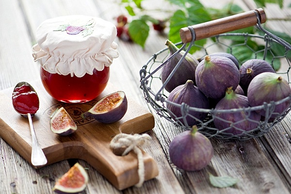 - Стерилизованные емкости заполнить инжиром, долить сиропом до рубчика, закупорить.