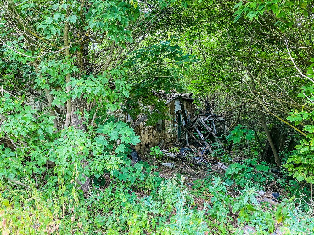 Всем привет! Продолжаем наше путешествие по заброшкам одного вымирающего села Орловской области. В предыдущей статье я показывал старый дом из шлака, который находился на окраине села в небольшом лесу. Неподалеку от него мы обнаружили еще одно брошенное строение. Конечно же, отправились туда, чтобы посмотреть, что там осталось от прошлого. Крыша у этого дома давно уже рухнула. Как и потолки. Стены вроде бы кое-где стояли, но тоже уже частично начали рушиться. В том месте, где стена рухнула, было хорошо видно, из какого материала ее строили. Это была глина смешанная с соломой. Из этого субстрата делали такие кирпичи, и затем уже из них строили дом. Причем, стены были прочными. И такой дом, наверняка, зимой хорошо держал тепло, а летом в нем, наоборот, было прохладно. На тех стенах, которые еще стояли, даже сохранились деревянные ставни на окнах. А вот рам и стекол там уже не было. Не было также и двери на дверном проеме. Мы решили заглянуть внутрь заброшки и посмотреть, что там осталос