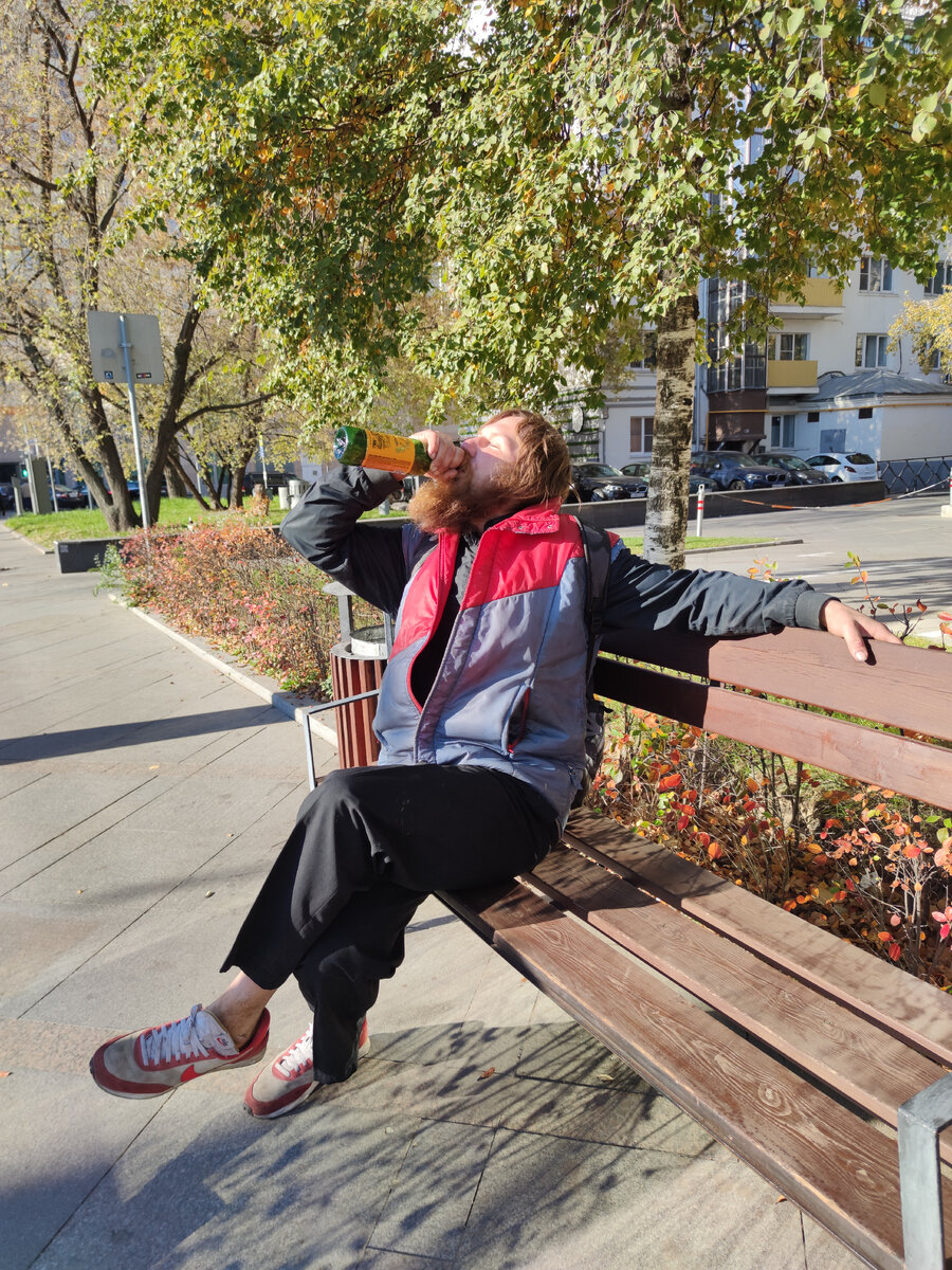 Проснулся, настроение не к черту. Так жалко себя несчастного, что в голову приходит лишь, надев наушники и врубив Гражданку, пойти страдать, гуляя по залитой солнцем Москве. Что я собственно и сделал. И вот, прогуливаясь по Лесной улице, и погружаясь все глубже в экзистенциальную весну одиночной камеры Егора Летова, мне встречается оно - El Clásico! Не подумайте, у меня нет желание как либо оскорбить Человека на фотографии, используя в отношении него местоимение "оно". Нет. Под "оно" и "El Clásico" имеется в виду событие. Подумайте сами: ранним,осенним, субботним днем пить портвейн 777 в центре Москвы, наплевав на общественное мнение и просто кайфуя от этого, не думая о том что будет завтра. Да что там завтра, через час! Разве это не счастье? Молодость спросила: водку, теплую из мыльницы будешь? Все во мне расцвело, запрыгало. А ещё это заманчивое предложение: айда со мной! Разорвало оковы одиночества. Как бы это не было странно, но я его очень хорошо понимаю, зная всю трагик