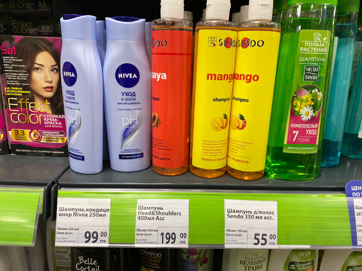 Шампуни для волос от бренда «Sendo» с ароматами манго и папайи - довольно жёсткие, хорошо промывают волосы, но людям с чувствительной кожей головы не подойдут. Объём: 350 мл Стоимость: 55 рублей Женские тапочки разных цветов и размеров (до 40 в основном). Тапочки довольно хлипкие, максимум на пару месяцев, а дальше если уж не развалятся, то приличный внешний вид точно потеряют. Стоимость: 199 рублей Товары для кухни - скалки бренда O'Kitchen длиной 43 см в двух цветах: белый и бежевый, материал: силикон, полипропилен, сталь. Стоимость: 199 рублей Кондитерский мешок с 6 железными насадками в комплекте, очень удобно, особенно если одновременно используешь несколько видов крема. Стоимость: 99 рублей Набор эластичных крышек - идеальное решение для того, чтобы еда не заветрилась, а так как крышки многоразовые, больше не нужно тратить метры фольги и пищевой пленки, а также накрывать блюда тарелками, которые постоянно так и норовят съехать и разбиться, когда открываешь холодильник. Стоимость