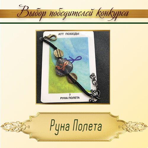 Традиционно знакомим наших подписчиков с выбором победителей. Выбор одного из победителей конкурса прошлого месяца выпал на Магический артефакт, талисман – браслет с боевой руной Черных Нагов. Атт Победы. Руна Полета. Описание качеств руны: Руна Полета. – парение, невесомость, воздушность, легкость, направление движения, планирование, просмотр будущего, видение результата, интуитивное предвидение, пророчество, выбор направления, легкое движение к цели, правильность выбора. Талисман – браслет с боевой руной Черных Нагов можно использовать как талисман, приносящий успех и удачу во всем, так и Практикующим Магами - Рунологами, работающим с потоками энергии, как магический артефакт для работы с социумом. Все талисманы с Рунами Черных Нагов условно разумные. Они улавливают мыслительные потоки хозяина и формируют нужные Ветки Вероятности, то есть исполняют пожелания и мечты то