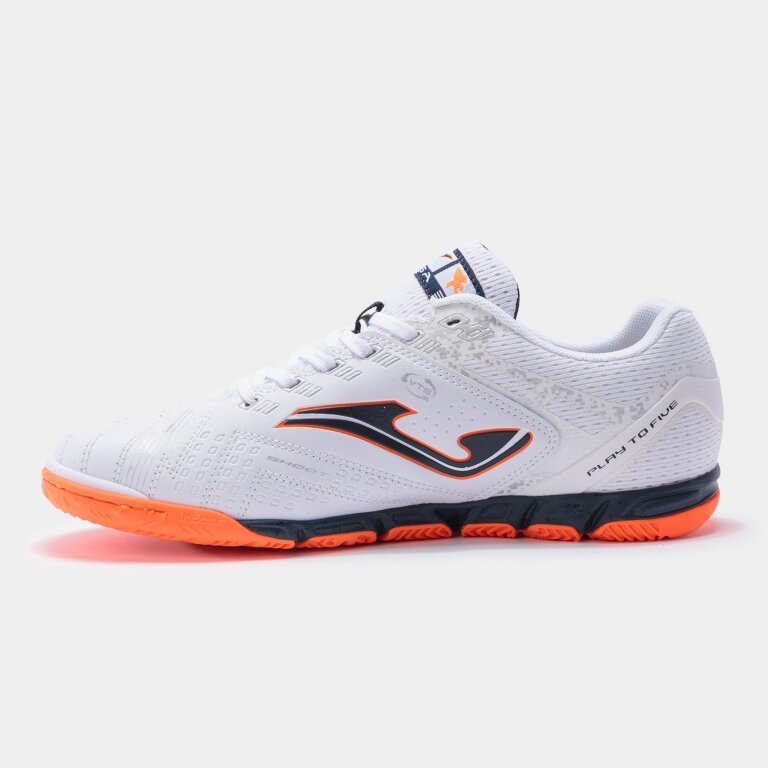 Футзалки полупрофессионального уровня JOMA LIGA 5 LIGW2103IN предназначена для использования на жестких, зальных покрытиях. При изготовлении верха используется сочетание стойкой к истиранию микрофибры и искусственной кожи, благодаря чему игровая обувь обладает легкостью, комфортной посадкой и имеет хорошую воздухопроницаемость. Расположенная в передней части верха рельефная прошивка дает лучшее ощущение мяча при контакте с ногой. Используемая в этой модели технология VTS создает дополнительную вентиляцию и делает игровую обувь максимально комфортной. Созданный по технологии Protection, носок усилен замшевым покрытием и пластиковой накладкой. Легкий, вспененный материал внутренних стелек способствует созданию дополнительного комфорта. Оптимальный уровень амортизации обеспечивает легкая промежуточная подошва, которая производится из вспененного материала. Располагаемая в промежуточной подошве гелевая вставка Pulsor поглощает энергию удара при контакте ноги с опорной поверхностью и облегчает отталкивание. Внешняя подошва выполнена из сверхпрочного каучука по технологии Durability. Геометрическая структура системы Rotation, расположенная в передней части подошвы, облегчает разворот и маневрирование. Цепкий протектор на подошве улучшает сцепление на полированном, зальном покрытии.