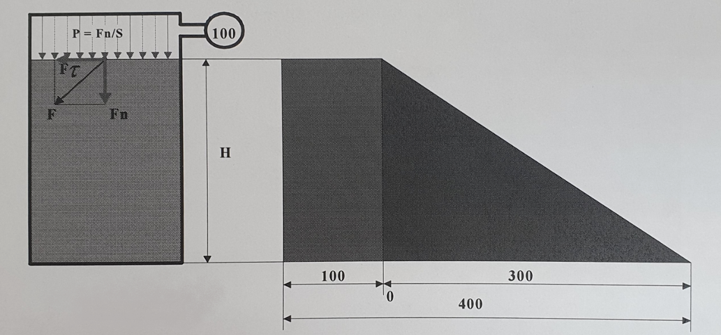 Если мысленно выделить внутри жидкости некоторый объем, который находится в состоянии равновесия (так как жидкость находится в равномерном движении, то необходимо учесть силы инерции и сопротивления), и рассмотреть силы, которые действуют на него, то можно обнаружить, что эти силы могут быть двоякого рода. Первые из них – эти поверхностные, то есть, такие силы, которые распределены по поверхности выделенного объема жидкости и по своей величине пропорциональны поверхности. К ним должны быть отнесены силы трения, упругости, поверхностного натяжения, давления окружающей среды и т. п. В общем случае вектор какой-либо силы F (рисунок) действующей на площадку в произвольном сечении, параллельном поверхности жидкости, образует с внешней нормалью к этой площадке некоторый угол и поэтому может быть разложен на две составляющие – нормальную Fn и касательную Fτ. Нормальная составляющая Fn вызывает деформацию сжатия. Напряжение сжатия обозначают буквой Рп и называют давлением. В частном случае, эт