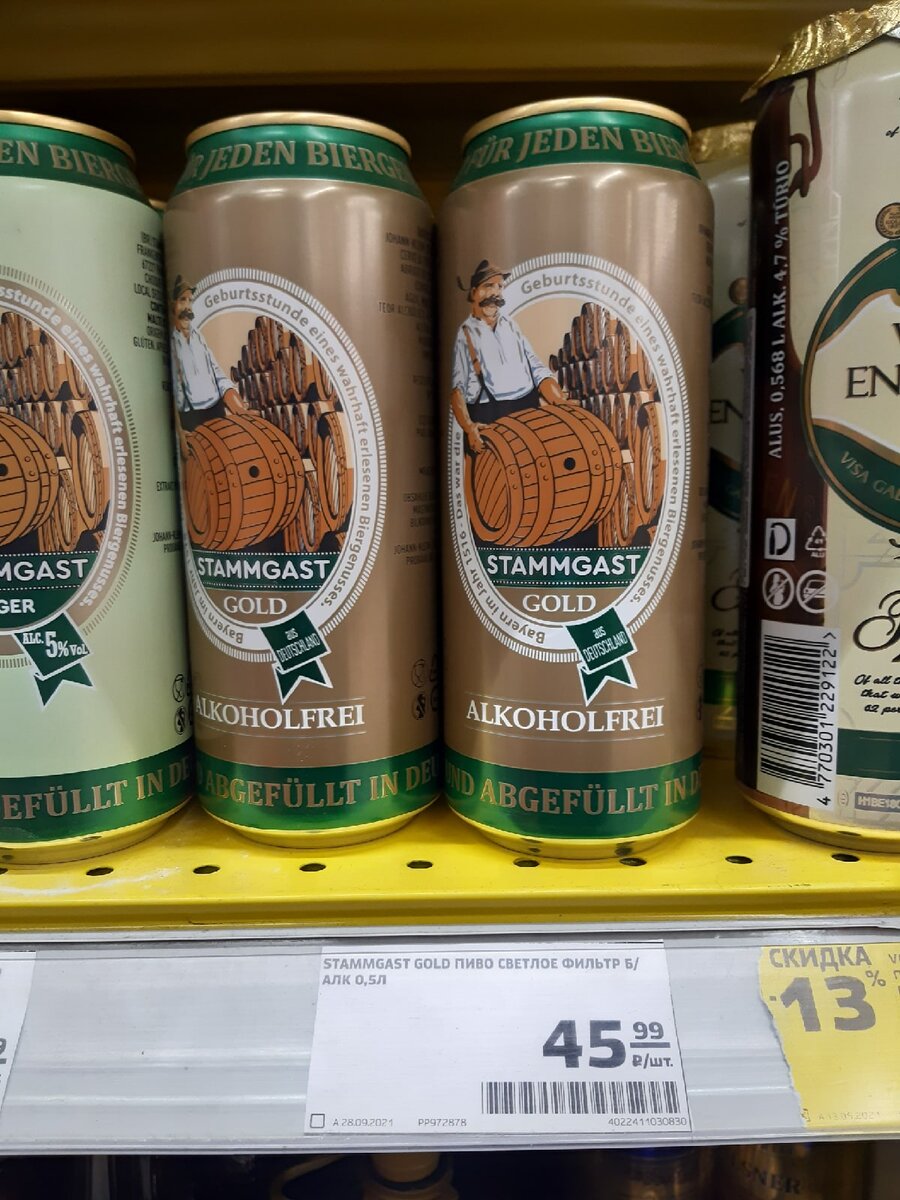 Попробовав лагер от одноименной компашки, взял еще баночку, одну, правда, но при этом не заметил кое что, от чего потом пожалел Как и у STAMMGAST Lager на этикетке мужик с бочкой, пиво все такие германское, из Магнита. Но я почему-то название не прочитал, ведь в других магазинах, где я привык что-то приобретать из пенного, безалкогольное пиво стоит отдельно от остального. Банку не разглядывая просто кинул в корзинку. пиво STAMMGAST GOLD Alkoholfrei И вот, я такой весь довольный вечером разливаю пивко, смотрю там принюхиваюсь, пробую..... и понимаю, что я лошара. 🤣 Пиво прозрачное, соломенного цвета, слабо ароматное: солод и водопроводная водичка. А вот на вкус.... Н вкус пиво безалкогольное, вернее это не совсем тот вкус, на который я рассчитывал. Возможно , как какая--то альтернатива алкогольному пиву и сойдет. Но , во-первых, я не ожидал , что у меня будет безалкогольное пиво, и потому мне оно сразу не понравилось. А во-вторых, этот неприятный привкус, как у всех безалкашек. В