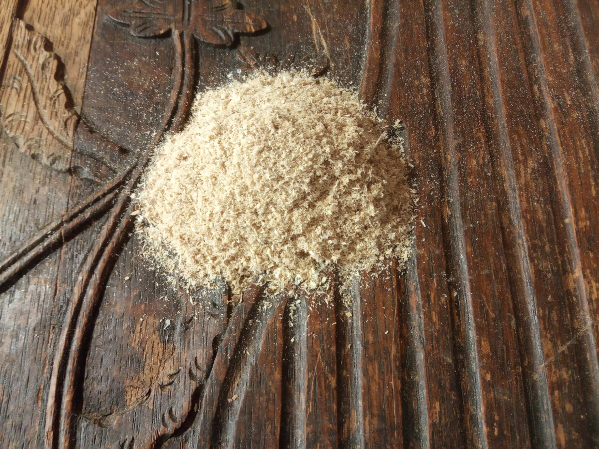 Если применяем смывку типа Abbeizer, то она представляет из себя гелеобразную массу, которую наносят на поверхность деталей. После выдержки она, в целом, остается такой же и удалять ее соскабливая не очень удобно, так как она просто размазывается по деталям. С резными и объемными фигурными элементами это довольно особенно не с руки. Потому после выдержки необходимо присыпать некоторым количеством опилок обработанные гелем места и сразу же приступить чисткой щеткой. Опилки будут впитывать и грязь и остатки геля.