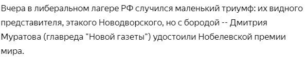 Нобелевская премия либералу Муратову, как "плохой сигнал" Путину