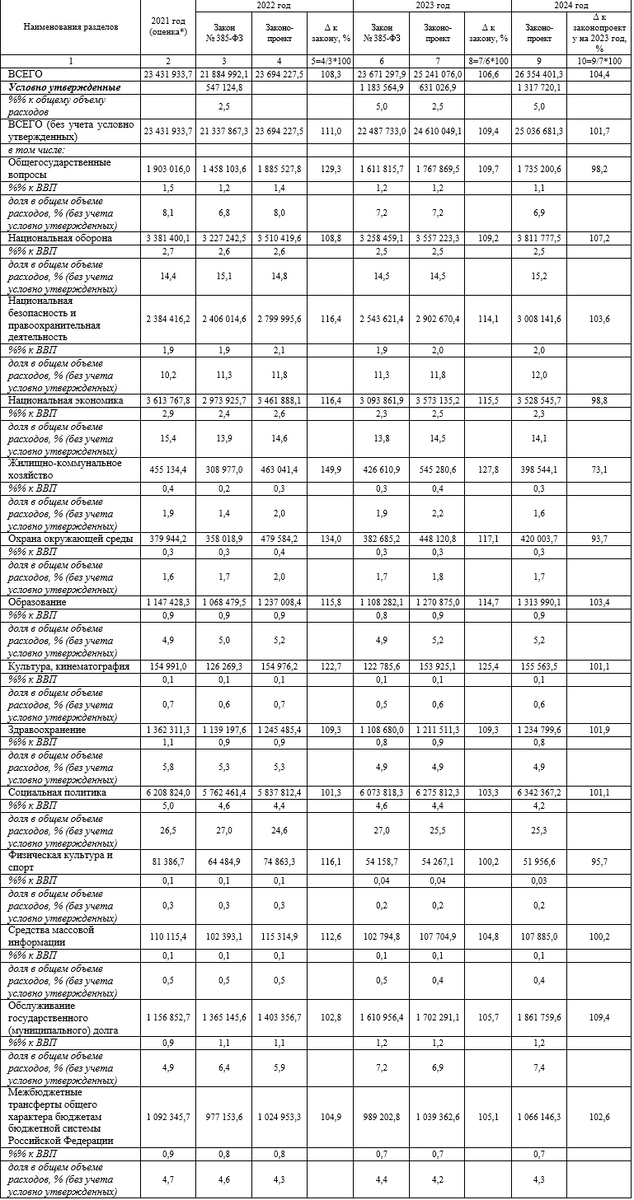 Расходы федерального бюджета по разделам классификации расходов на 2022 год и на плановый период 2023 и 2024 годов