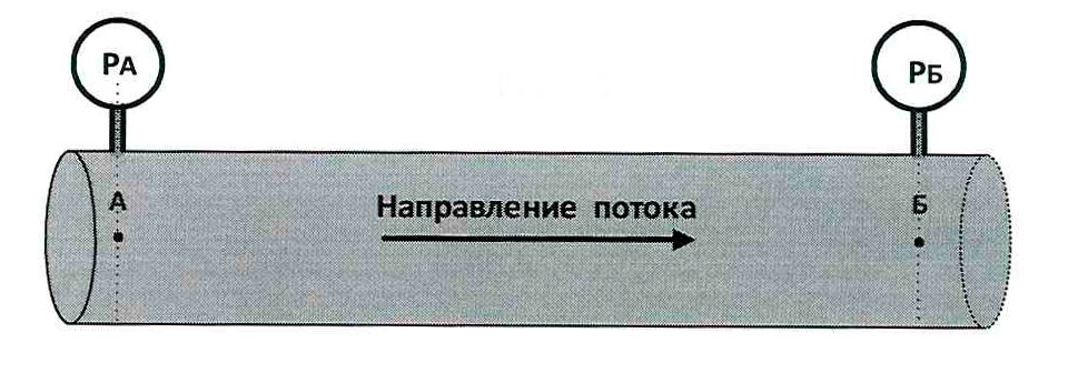 Возьмем за основу горизонтальный трубопровод с манометрами в точках А и Б, по которому циркулирует промывочная жидкость (рисунок). Давление в точке А выше давления в точке Б. Разница давлений Р = Ра – Рб соответствует перепаду давлений между А и Б. Перепад давления выражается обычными единицами.