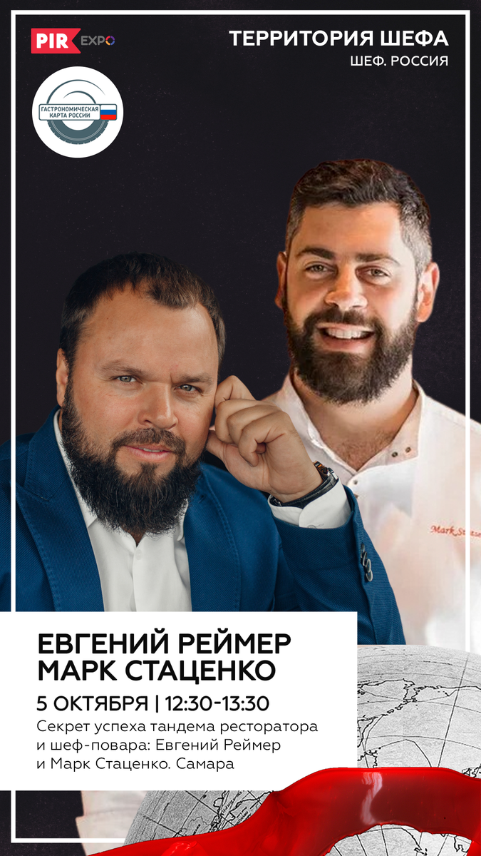 Тема раскрывает специфику работы тандема шефа и ресторатора. Её нам предложила Екатерина Шаповалова, руководитель федерального проекта «Гастрономическая карта России». Ресторанный бизнес — это всегда командная работа. У нас отличная команда с Марком Стаценко. Нам есть, о чём рассказать.