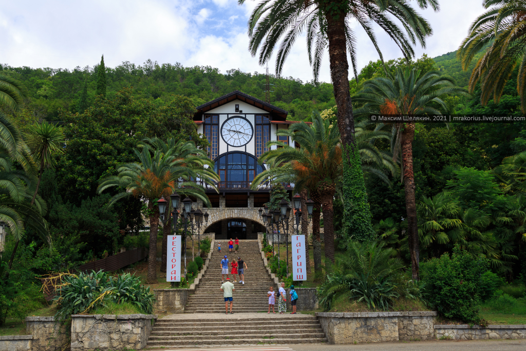 Ресторан «Гагрипш» изготовлен в Норвегии, доставлен в Гагру в 1902 году. В доме с часами на фронтоне 9 января 1903 г. торжественно открыли курорт Гагра.