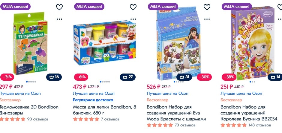 OZON - Дополнительная скидка 15% на детское творчество Bondibon