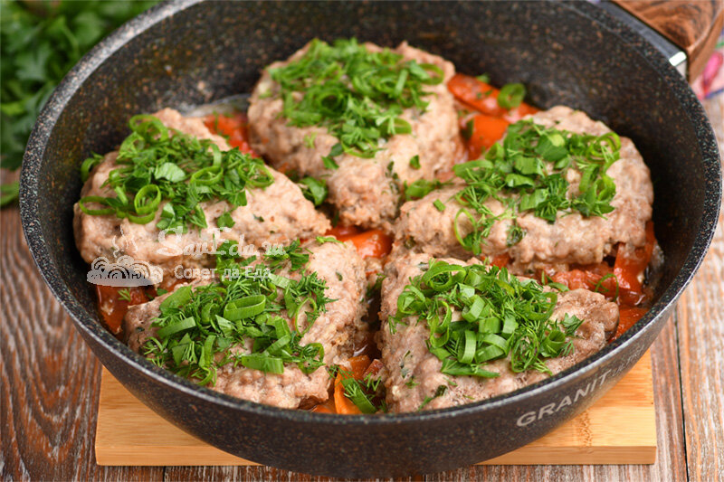 Это блюдо и полезное, и очень вкусное! Готовить его одно удовольствие. Просто закладываю все в сковороду и забываю про блюдо на 30 минут. Фарш и овощи готовятся в собственном соку, получаются невероятно ароматными и вкусными. Овощи можно использовать любые по вкусу. Порции 5 Время подготовки 15 минут Время приготовления 30 минут Ингредиенты Инструкции 1. Для приготовления подходит любой фарш (у меня свинина с говядиной). Фарш солим, перчим, дополняем измельченным луком (1 шт.), нарезанной петрушкой (2 веточки) и перемешиваем. Специи и зелень можно брать любые по вкусу. 2. В высокую сковороду наливаем масло, добавляем нарезанный лук (перья или полукольца) и зубчики чеснока (я их просто раздавила ножом). Посыпаем солью и молотым кориандром (1/3 ч. л.). 3. Морковь нарезаем на тонкие ломтики (так она быстро приготовится) и распределяем на луке с чесноком. 4. Следующим слоем добавляем нарезанные на кубики томаты. Снова немного соли и кориандра (1/3 ч. л.). 5. На томаты выкладываем нарезанн
