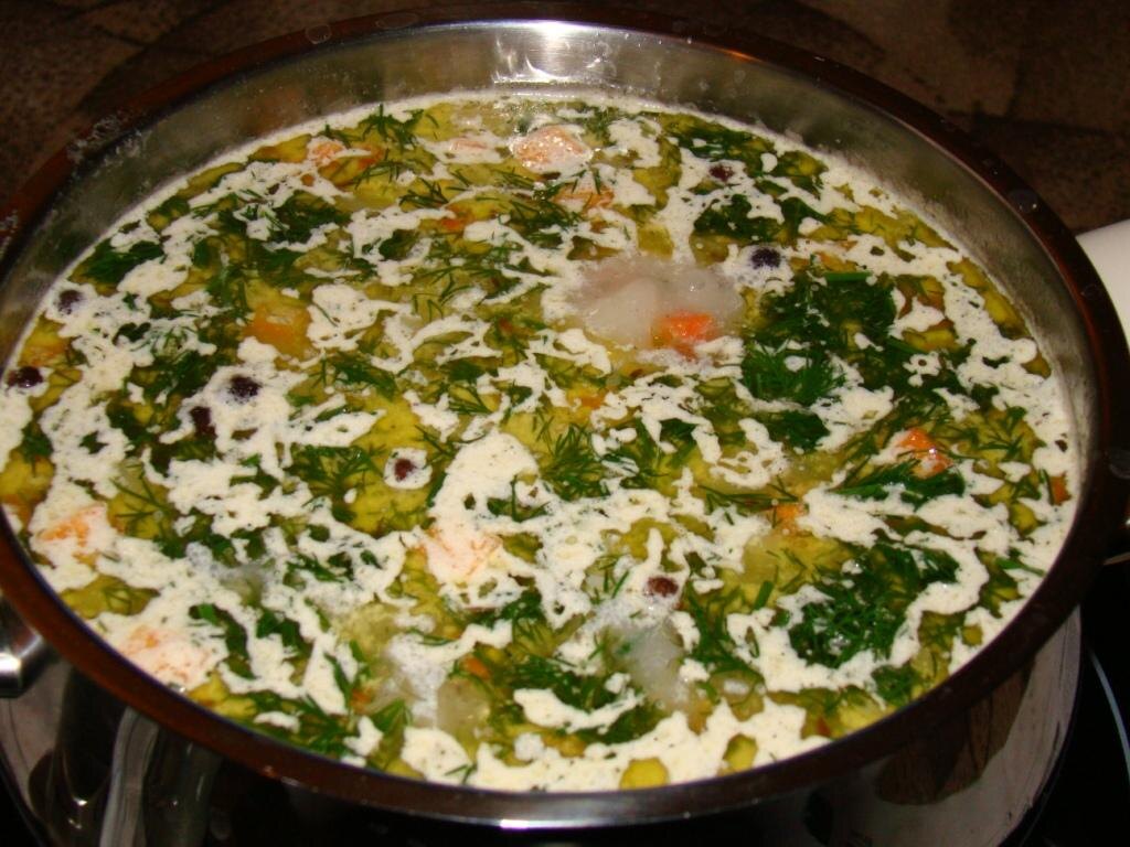 Я смотрел на приготовленную нами морскую форель, и понимал, что не съедим. Невозможно. И вроде было не много – где-то грамм 600, но приготовленная таким способом рыба, которая стала частью бутербродов, уйти за три дня не могла, а дальше держать малосольный продукт было нельзя. После маринования мы часть рыбы разобрали от костей и кожи, и смешали со сливочным маслом, часть порезали на маленькие кусочки, добавили капельку лимонного сока и мелко порезанный укроп, и такими кусочками укладывали на хлеб к чаю или кофе. А третью часть просто оставили в своем естественном виде и вкусе. Что-то типа вот этого: И часть рыбы, которая была с маслом и вообще без ничего, оставалась. Но разве можно выбросить этакий деликатес? Нет, никак не возможно! И я решил приготовить из этой рыбы суп по мотивам знаменитого сливочного финского супа с красной рыбой. Это не классика. Да, я и не помню точно, как готовится данное блюдо. Не с моей памятью. Так что экспромт. По-другому никак. Сливок у меня не оказал