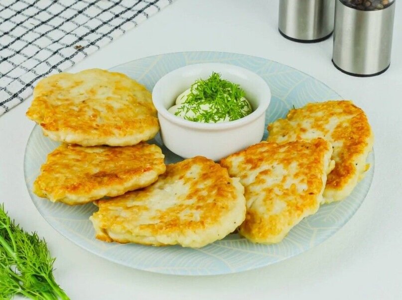 Вкусные оладьи из куриного мяса. 500 г куриного филе, 2 куриных яйца, 3 ст ложки майонеза, 100 г тертого сыра твердого сорта, 100 г муки, соль, специи и перец по вкусу, укроп по вкусу, растительное масло для жарки. 1. Куриное филе порезать, а остальные ингредиенты кроме масла для жарки смешать. 2. Положить мясо в тесто и хорошо перемешать. Оставить в холодном месте на несколько часов. 3. По истечению времени выложить тесто на сковороду и обжарить до готовности с двух сторон. Приятного аппетита!