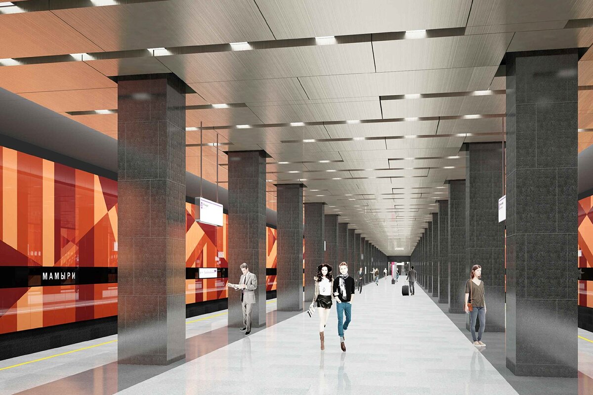 Станция метро «Мамыри» строится на свободном от строений участке вдоль Калужского шоссе на его пересечении с улицей Адмирала Корнилова. АО «Мосинжпроект» - управляющая компания по строительству станции метро «Мамыри». Согласно Адресной инвестиционной программе города Москвы станция проектируется в составе 17,5-километрового участка от станции «Улица Новаторов» до станции «Столбово» с пятью промежуточными станциями. Станция расположится на свободном от строений участке вдоль Калужского шоссе на его пересечении с ул. Генерала Корнилова. Предусмотрен один надземный и один подземный павильон с выходами на перекресток Калужского шоссе с улицей Адмирала Корнилова, к остановкам наземного городского и пригородного транспорта, а также к торговым центрам. У станции планируются два вестибюля, которые будут выходить к существующей и проектируемой застройке, остановкам наземного городского пассажирского транспорта. Проходка тоннелей по состоянию на июнь 2021 года: между станциями «Улица Новаторов»
