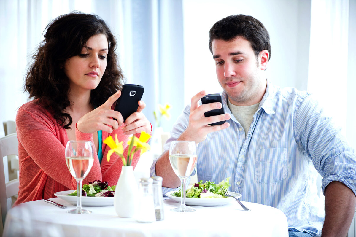 Не секрет, что большинство людей проверяют свой мобильный телефон в среднем 50 раз в день. Исследования также показывают, что около 85% пользователей смартфонов не выпускают из рук свои устройства, даже когда они находятся с друзьями и семьей. Есть не мало фактов подтверждающих, что причиной расставаний стали мобильные телефоны. И на оборот есть случаи у людей, которые решили отказаться от них (даже временно) и им удалось улучшить свою совместную жизнь. "Мы полностью сосредоточены друг на друге" "Меня зовут Наташа, и мой парень пристрастился к мобильному телефону. Я расстраиваюсь, потому что он постоянно использует свой мобильный, даже когда за рулём. Чтобы не разрушить наши отношения мы установили правило: всякий раз, когда мы делаем что-то вместе, мы убираем наши мобильные телефоны в ящик стола. Это так же касается просмотра телевизора вместе, разговора за ужином и т.д. Конечно же, мы можем отвечать на срочные звонки и смс, после чего мы продолжаем наше общение». "Мы создаем свобод