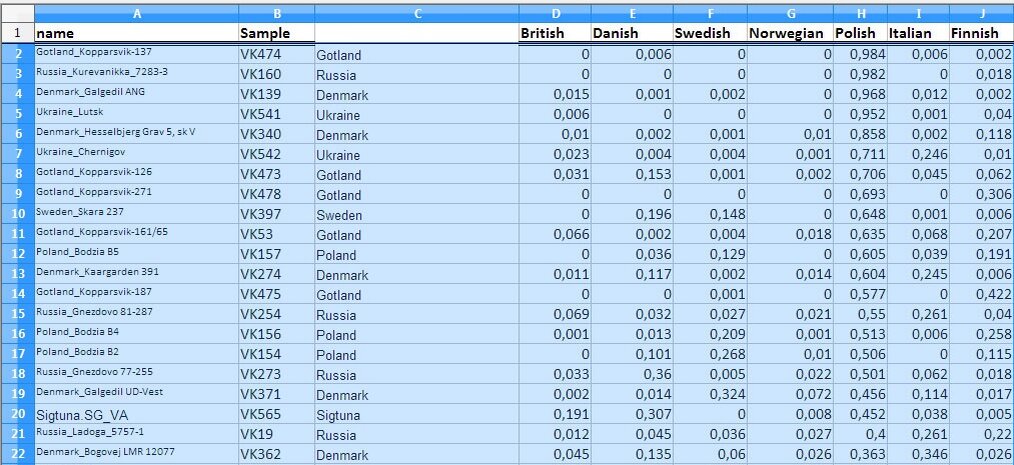 В обширном исследовании "Популяционная генетика мира викингов" было исследовано около двухсот образцов древней ДНК эпохи викингов из Скандинавских стран, Британии, Эстонии, Польши, Руси. Несколько десятков человек явно имеют славянских предков, особенно много с Готланда, многие из них демонстрирует сходство с современными поляками. Славянское происхождение имеют и четыре (если исключить женщин) викинга с территории Руси — VK408 из Ладоги, VK159 из Пскова, VK273 из Гнёздова, VK160 из Куреванихи. Результаты исследования могут порадовать как норманистов (присутствие шведов на территории Руси, и значительное, вероятно с большим количеством женщин, доказано), так и антинорманистов (среди викингов обнаружилось неожиданно много славян). В таблице представлены образцы, демонстрирующие сходство с поляками. Материал из статьи "Population genomics of the Viking world"