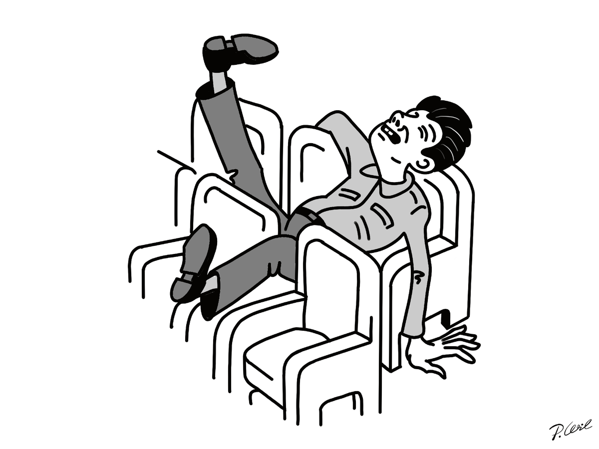 лежал на креслах человек.
