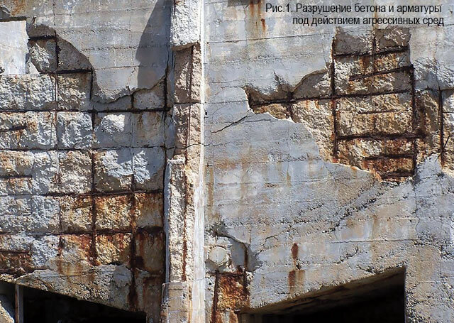 Для бетонных конструкций губительно воздействие агрессивных сред (рис 1.). К их числу относятся грунтовые и сточные воды, атмосферные осадки, химические и химико-физические факторы. Результатом этих воздействий становится коррозия материала. Из-за этого снижаются прочность и долговечность бетона, ухудшаются его эксплуатационные характеристики и сокращается срок службы всей конструкции. Все это приводит к тому, что увеличиваются расходы на содержание и возникает необходимость искать средства для проведения ремонтных работ. Поэтому защита бетона от коррозии — актуальный вопрос в современном строительстве. Защитить бетон от коррозии можно с помощью превентивных мер, и своевременного выявления коррозии на объекте. Поэтому проведение работ по защите бетона от агрессивных сред считаются первостепенными. Своевременно выполненные они сэкономят ваши средства в будущем, за счёт продления срока эксплуатации строительных конструкций. Мы рекомендуем применять для работ материалы системы Пенетрон. Ч