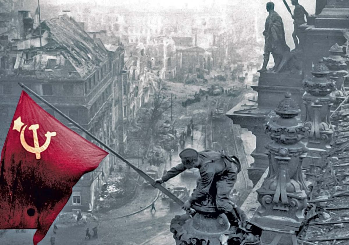 Широко известны кадры кинохроники и фотографии фронтовых корреспондентов газет «Правда» и «Красная Звезда» группы советских бойцов с красным знаменем, сначала на площади перед центральным входом в рейхстаг, затем – на его крыше.