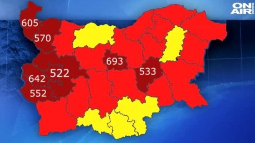В Болгарии уже 8 областей находятся в „темно-красной“ зоне распространения COVID-19
