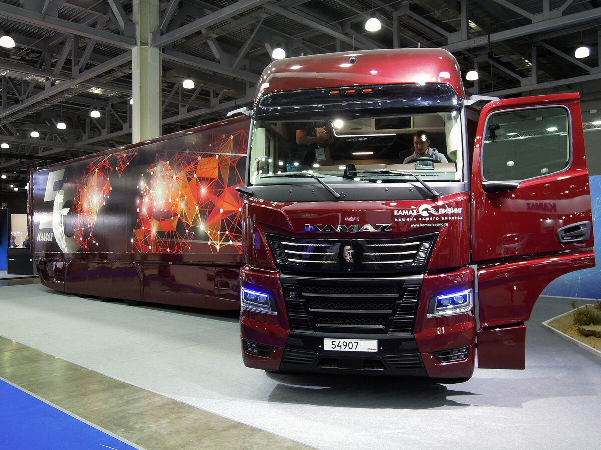 На недавней выставке Comtrans 2021 российский автопроизводитель продемонстрировал новейший концептуальный автопоезд под названием «CONTINENT». Экспериментальное транспортное средство состоит из седельного тягача КАМАЗ-54907 и аэродинамически эффективного полуприцепа КАМАЗ-93341-1300010-60.