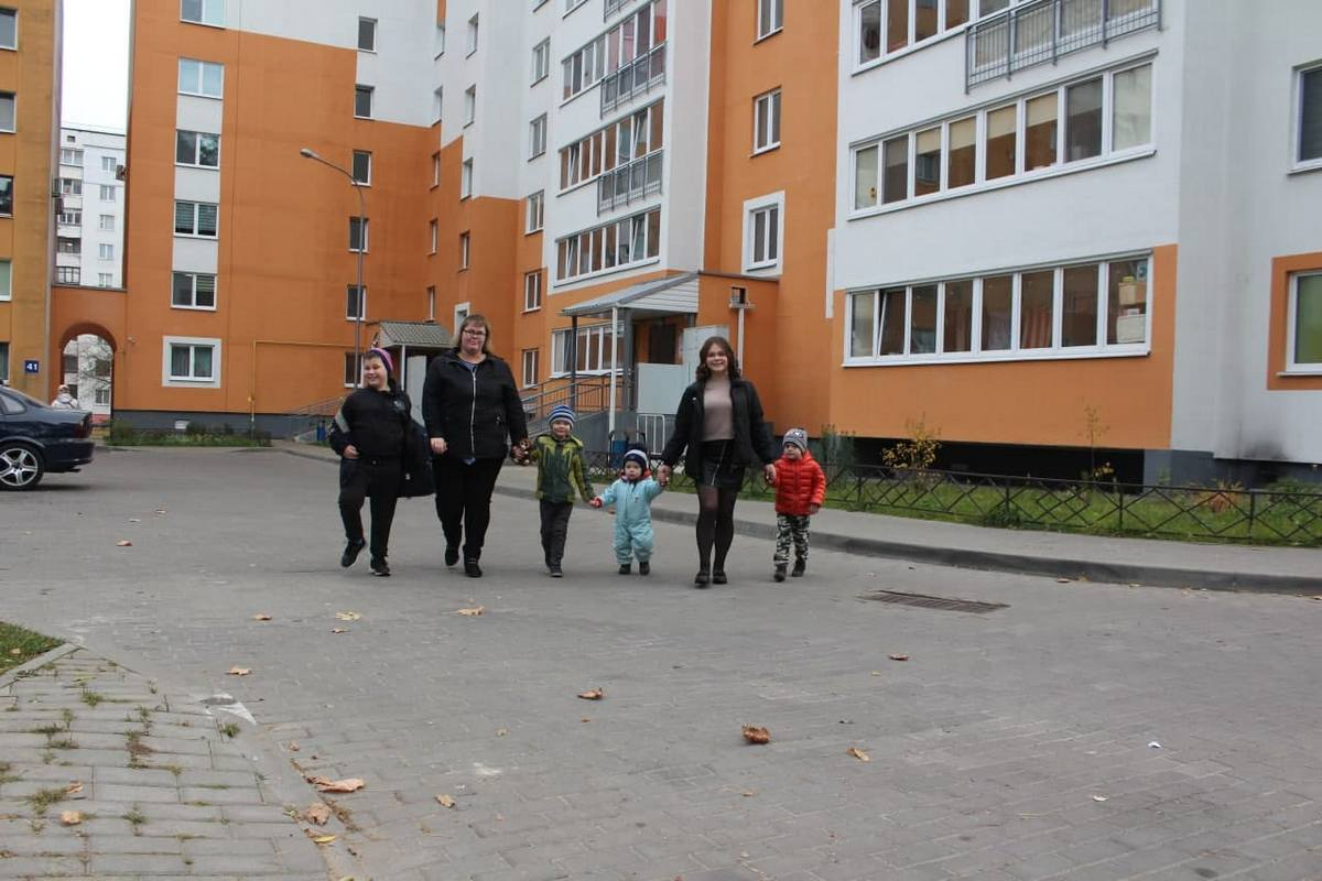Наталия встретила нас на детской площадке возле своего дома. Говорит, последние погожие осенние денечки стараются больше бывать на улице. Рядышком играла детвора. Повсюду игрушки, звонкий смех. С самым младшим годовалым Пашей помогает нянчиться старшая дочка Юля. Он во всем ее слушается и, заприметив незнакомую гостью, не слазил с рук сестры ни на минутку.