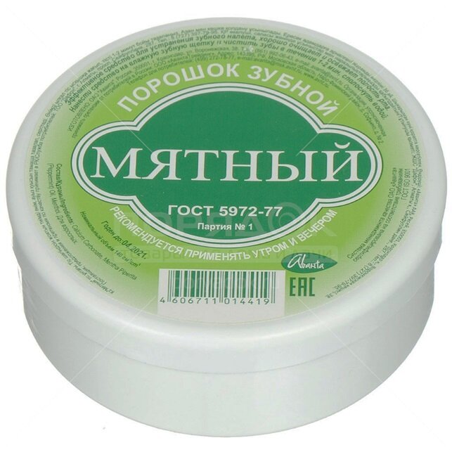 Ниже укрупненный фрагмент этикетки зубного порошка "Мятный".