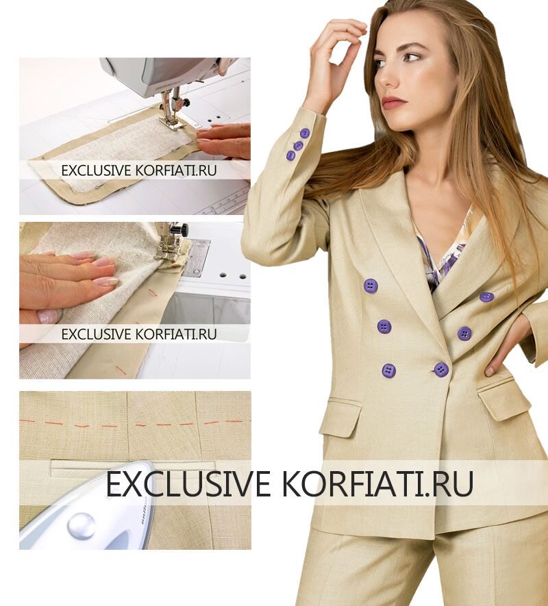Прорезные карманы с клапаном изготавливают не только на классических мужских и женских пиджаках и пальто, но и на жилетах, жакетах, парках и других изделиях. Существует несколько разных методов обработки карманов с двумя обтачками. Один из самых простых способов мы давали вам в одном из наших предыдущих уроков. На этот раз предлагаем рассмотреть технологию обработки прорезного кармана, которую часто используют мастера, специализирующиеся на пошиве мужских костюмов. Выкройку жакета, представленного на фото, можно найти в книге Анастасии Корфиати «Блузки и жакеты от А до Я», а также, перейдя по ссылке Выкройка двубортного жакета