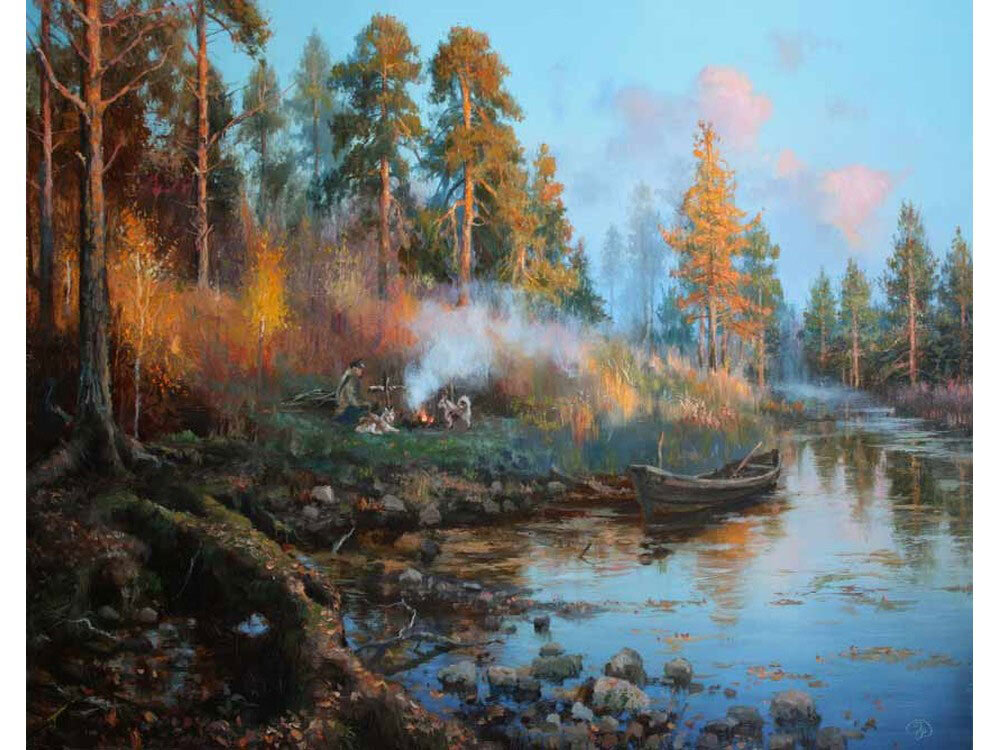 Посидеть у большого огня Пригласи меня, поздняя осень, Свежим спилом огромного пня, В лапах елей заброшенных просек; Не скрывая свою наготу Лес покажет огромные раны И оплачет такую судьбу Ароматной смолою янтарной. Кружат птицы короткий свой век Над верхушками вековыми, Простирает объятия лес Над просторами голубыми. Разгорается быстро костёр, Холода начинаются рано… Я в лесочек знакомый зашёл Отогреть свои старые раны. ***