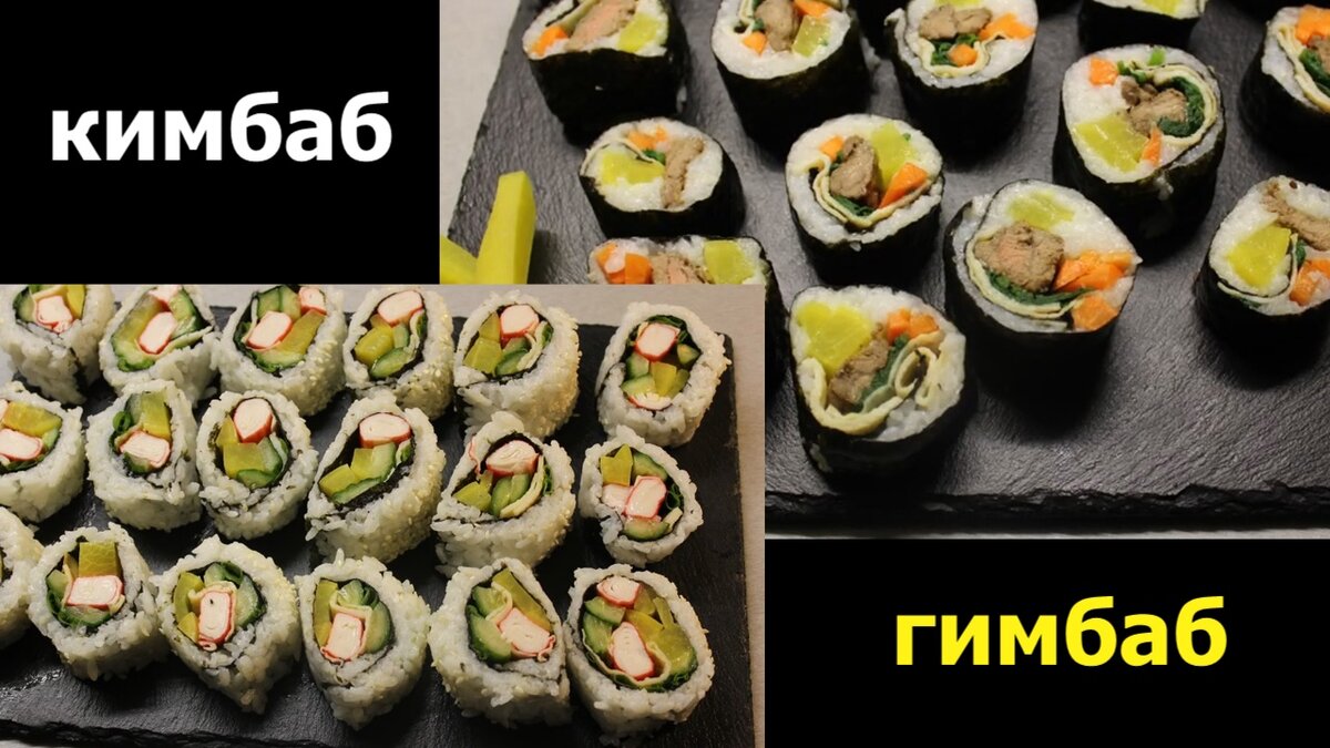 Кимбаб ( гимбаб)..Кимбаб наизнанку. Как сделать кимбаб.김밥. Суши- Роллы. Завёрнутые в листы морской капусты( ламинарии)на один укус. Это замечательная закуска на праздник и на пикник. Классический кимбаб с разноцветной начинкой очень красивый и вкусный. Его называют корейским роллом. , но рис не готовят с уксусом, а готовят с кунжутным маслом. и посыпают кунжутом. Ещё делают омлетный блинчик и кладут его в роллы. Кимбаб отличается от традиционных японских роллов. Стоит попробовать. Классический кимбаб с разноцветной начинкой . Очень красивый и вкусный Варим рис до готовности. Сначала я его промываю до прозрачной воды и варю до готовности. Берём рис для суши и роллов. Отличие в корейских роллах в том, что заправляют их не рисовым уксусом, а кунжутным маслом. Далее в корейских кимбабах обязательно добавляют редьку маринованную - Дайкон. Её можно мариновать самим я купила в магазине Мэтро в отделе азиатские блюда. Она хорошо хранится хрустящая на вкус. Шпинат. Шпинат добавляют тоже почти