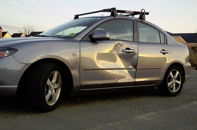 Ремонт вмятин таким способом малоэффективен при сильных деформациях кузовных элементов