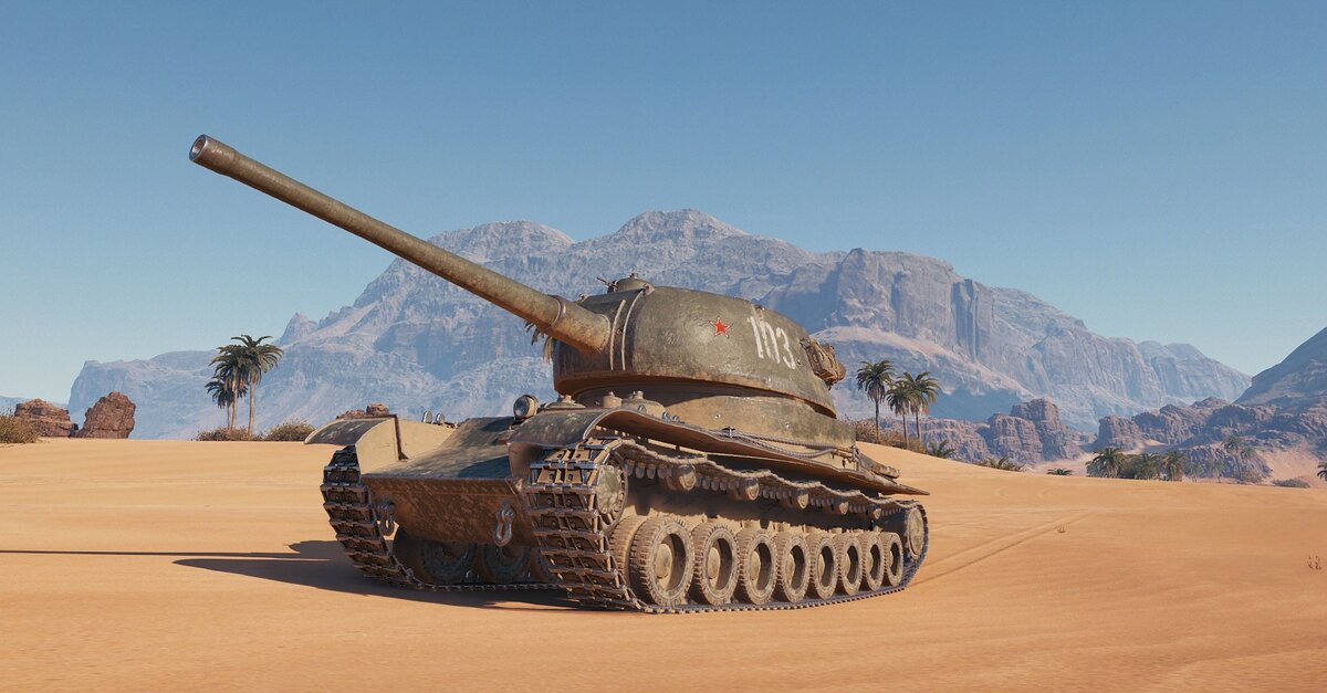 Приветствую! Сегодня поговорим о танке за боны, а именно о Т-103. И так из всего списка предложенной техники за боны, Т-103 выглядит не плохим вариантом. Это пт-сау с башней, восьмого уровня из-за своих больших габаритов играется как тяжёлый танк. Орудие У танка как у СУ-100Y установлено корабельное орудие 130 мм Б-13, с пробитием на обычных снарядах 258 мм и на голде 307 мм при уроне 440. Тип снаряда в обоих случаях бронебойный. Фугас пробивает 65 мм и урон 580 едениц. Для своего уровня, хорошие показатели. Броня У пт хорошо бронирована башня 220 мм во лбу, борт и корма 145 и 60 мм соответственно. Но огромный корпус лишён брони и пробивается любым снарядом. По геймплею следует играть как тяжёлый танк, так как из-за больших габаритов и низкой маскировки играть на дистанции не получится, быстро засветят. Поэтому из оборудования лучше ставить улучшенную закалку, чтоб увеличить HP для размена, досылатель и вентилятор/ просветлённая оптика. Так же Т-103 является премиум техникой, прино