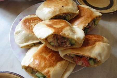 Смешать теплую воду, дрожжи и сахар. Отставить до вспенивания. Затем соединить опару с мукой и солью, вымешивать до образования мягкого теста. Разделить на 12 шаров, каждый слегка сдавить, после раскатать в округлые лепешки толщиной до 5–7 мм. Положить кружки на посыпанную мукой тарелку и отставить на 1 час, накрыв посуду салфеткой. Нагревать духовку 10 минут до высокой температуры. Положить питту на сухой противень и держать на нижней решетке духовки 5 минут. Когда питта готова, низ должен быть золотистым, а верх – кремовым. Вынуть хлеб из духовки и подать к столу.
