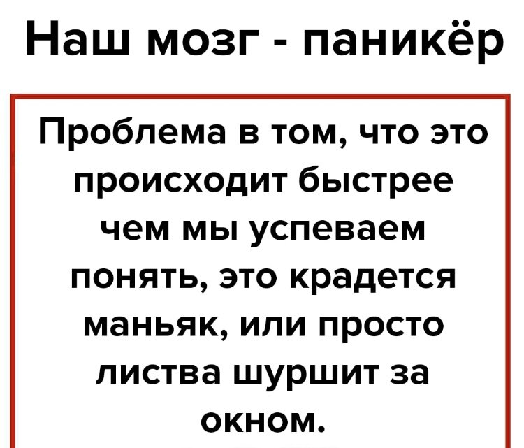 Наверное, каждый сможет вспомнить случай, как однажды ночью ему показалось, будто в комнату забрался вор, а на деле это оказывался старый халат на ручке двери. Что ж, к этому нас подготовили миллионы лет эволюции.