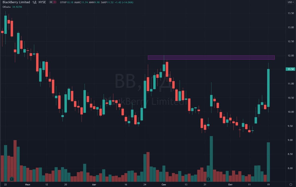 Выпуск в видеоформате Телеграмм-канал для практикующих трейдеров https://bit.ly/3pr7cIa BlackBerry (BB) Компания BlackBerry (BB) стала лидером по числу обсуждений на Wall Street Bets после того, как ее акции подорожали на 14%. Катализатором роста стала новость о том, что BlackBerry получила патент под названием «Метод и система для отслеживания трейлеров и управления запасами»; Tilray (TLRY) На прошлой торговой сессии акции Tilray (TLRY) подорожали на 15,8%. Спрос на бумажки производителя каннабиса вырос из-за того, что руководителем канадского отделения компании стал Блэр МакНил. Трейдерское сообщество считает, что после 50% падения акции TLRY недооценены рынком. Alibaba (BABA) Акции Alibaba (BABA) выросли на 6,1% после того, как стало известно, что компания разработает собственный процессор, который положительно повлияет на бизнес Alibaba в сфере облачных вычислений; Akero (AKRO) Препарат эфруксифермин, который разрабатывается компанией Akero (AKRO) для лечения стеатогепатита, получ