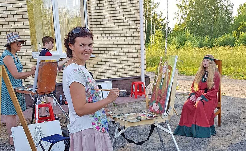 — В поездке у нас кончились деньги и мы поехали… в монастырь. Там можно было устроиться на работу за еду, – улыбается Инга. – Днем мы сено косили, вечером поливали огурцы, а в промежуток умудрялись писать этюды. Там я познакомилась с будущим мужем Андреем. Он, как и мы, приехал в Горицы поработать. Для него это был отдых после долгого рейса на туристическом теплоходе: команда и персонал живут рядом с машинным отделением, где стоит постоянный гул. Это тяжело, а на природе такая тишь.