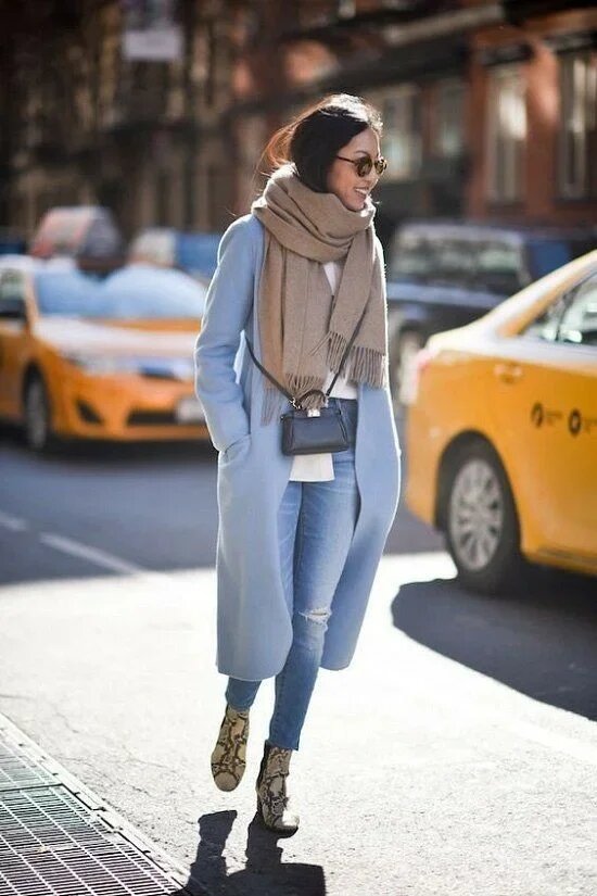 Добрый день, дорогие читатели! Зимний период намного богаче на аксессуары, чем летний. Появляются шапки, шляпы, береты, платки, палантины, перчатки и конечно же ОН – шарф! Поговорим сегодня о шарфах и как при их помощи создать по-настоящему модный образ, придав, например, пальто или куртке базовых цветов шика и стильности! Помимо чисто стилистической задачи у шарфа есть главная и основная задача это спасать Вас от холода, греть и защищать от ветра и снега. Поэтому совет как бы не был красив шарф, старайтесь выбирать этот аксессуар из натуральных материалов. Каким должен быть шарф и как же его лучше носить чтобы выглядеть современно, актуально и стильно. Объемный шарф Сейчас шарф в стиле «оверсайз» на пике, очень трендовая вещь. Способы ношения такого шарфа разнообразны, например, обмотайте вокруг шеи и завяжите концы, получится стильная и теплая альтернатива шарфу-хомуту. Еще один вариант, обматываем на один оборот вокруг шеи, а полоски шарфа крепим при помощи пояса. Ну и наконец,