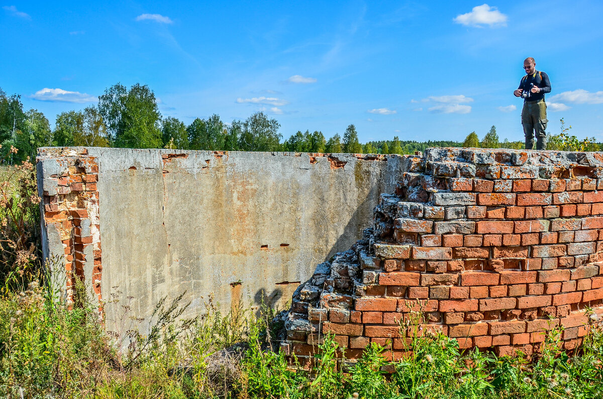 Закончив осмотр "цилиндра" мы отправились на поиски мест, где когда-то стояли дома. Пройдя буквально пятьдесят метров нами была найдена первая домовая яма. Разумеется, что за сто лет мало что осталось от жилищ коммунаров, однако нам повезло обнаружить одну необычную деталь, из-под земли торчал угол каменной кладки, судя по всему, некогда являвшаяся частью погреба. Пробраться в подземелье оказалось невозможно по причине того, что всё внутреннее пространство было завалено землей и частично строительным строительным мусором.