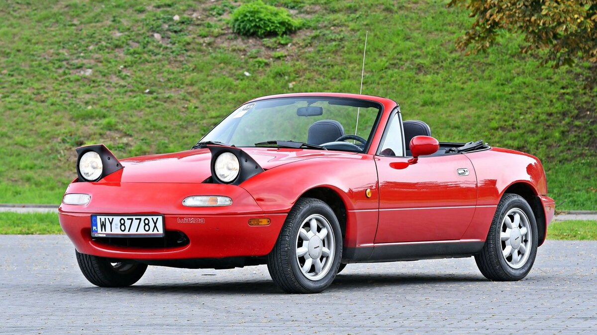 Mazda MX-5 / Miata — родстер, появившийся в 1989 году, выпускающийся компанией Mazda. Разработка велась совместно с инженерами компании Lotus Cars, в результате автомобиль унаследовал главные черты классических британских спортивных автомобилей (легкий вес, двигатель внутри колёсной базы, задний привод, простота конструкции). Первое поколение NA Первое поколение было показано 10 февраля 1989 года на автосалоне в Чикаго, с ценой в США $14000. Начало производства: Май 1989 (США, Канада); 1 сентября 1989 года (Япония); 1990 год (Европа). Кузов NA был цельнометаллический стальной, капот алюминиевый. Весил он 980 кг. Коэффициент сопротивления был указан как 0,38. Подвеска была независимой, с рычагами на всех четырех колесах, со стабилизатором поперечной устойчивости спереди и сзади. MX-5 поставлялся с 1,6 литровым двигателем, мощностью 116 л.с, система питания — распределенный впрыск. Этот двигатель, под кодовым названием B6ZE(RS), был специально разработан для MX-5. Он имел облегченный